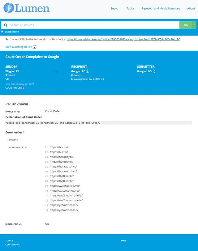 根据独立获取的信息,其中一个潜在问题是2022年12月获得的一项原始命令,该命令要求屏蔽包含知名盗版品牌的域名,包括123movies、fmovies、soap2day、hurawatch、sflix和onionplay。这直接导致了另一个不寻常的问题。