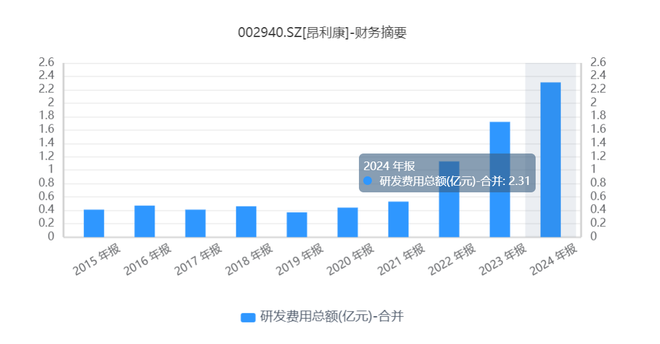 2024年,公司将研发投入增至2.31亿元,较上年同期增长33.74%,占当期营业收入比例为14.99%,远超行业均值。与此形成对比的是,2024年,昂利康营收同比下滑5.41%,净利润和扣非净利润分别大幅下滑41.94%、54.71%。