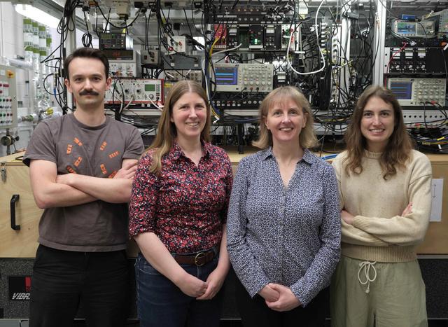 NPL镱离子光钟团队(从左到右:Patrick Regan、Anne Curtis、Rachel Godun、Alexandra Tofful)。图片来源:Thilina Senaviratne