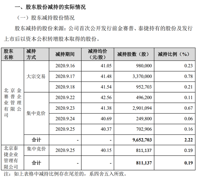 在股价高涨、原始股东三年解售期过后,范敏华持股30%的金赛普投资、范敏华夫妇持股的泰捷投资开始减持公司股票。2020年,减持合计套现了1.5亿元。
