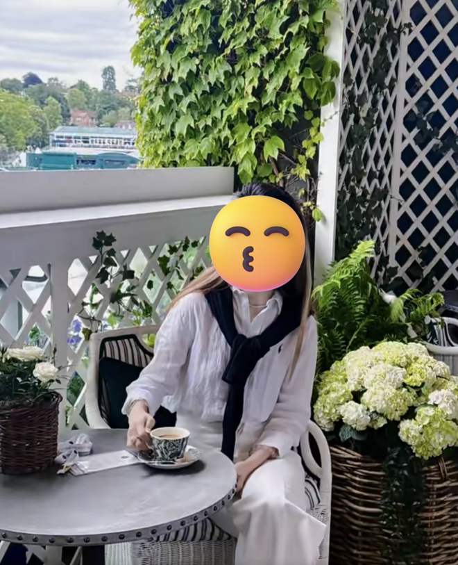 除了名流观赛和大片拍摄,拉夫劳伦还会邀请时尚红人和网球圈具有影响力的嘉宾进入自家包厢进行拍摄、观赛和宣传。网红们拍摄的内容甚至拍摄角度都几乎是一比一复刻,官方授意显而易见。落地窗外的温网草地,窗内的司康、红茶、草莓奶油和印着RL Logo的菜单,一切都是专为KOL拍照打卡发图文笔记给拉夫劳伦打广告的精心布置。