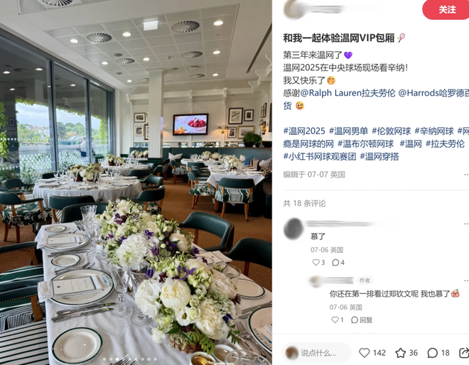 社交平台上,#温网穿搭攻略# 成了热词,小红书、TikTok、INS轮番刷屏名流穿搭。Lacoste、Gucci、Givenchy纷纷“被带货”,明明没买广告,却个个在温网赢了面子、赚了流量。