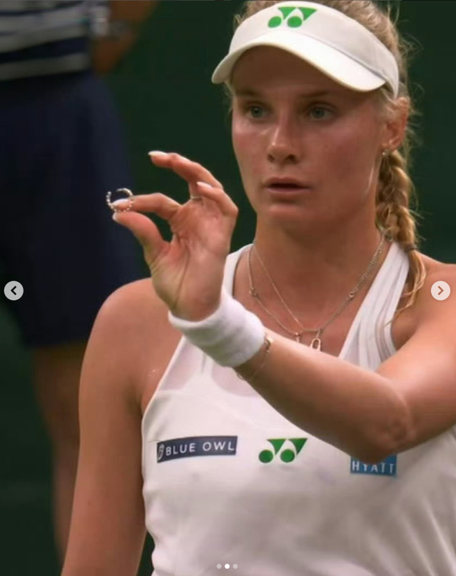 女单夺冠大热门Coco Gauff在比赛中佩戴的Missoma网球系列耳环,不小心掉在场上,对手Dayana Yastremska现场帮忙捡起。