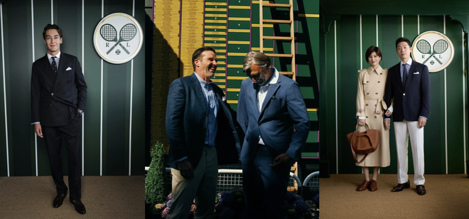 还有F1赛车手拉塞尔一身条纹西装,拿捏温网速度与优雅传奇;两位温网前冠军齐齐身着Ralph Lauren正装现身,复刻2001年决赛传奇。还有国内体育界名人许昕姚彦,一个穿紫标RL、一个穿长袖风衣。