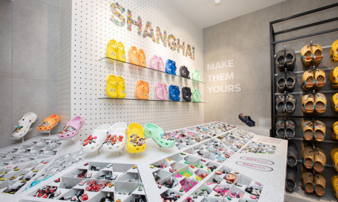 Crocs再次读懂了消费者的情绪,一方面,始终把“DIY体验”和产品紧密结合,让消费者也掌握创作权。比如在上海兴业太古汇旗舰店的智必星区,顾客就可以现场DIY独属于自己的洞洞鞋。