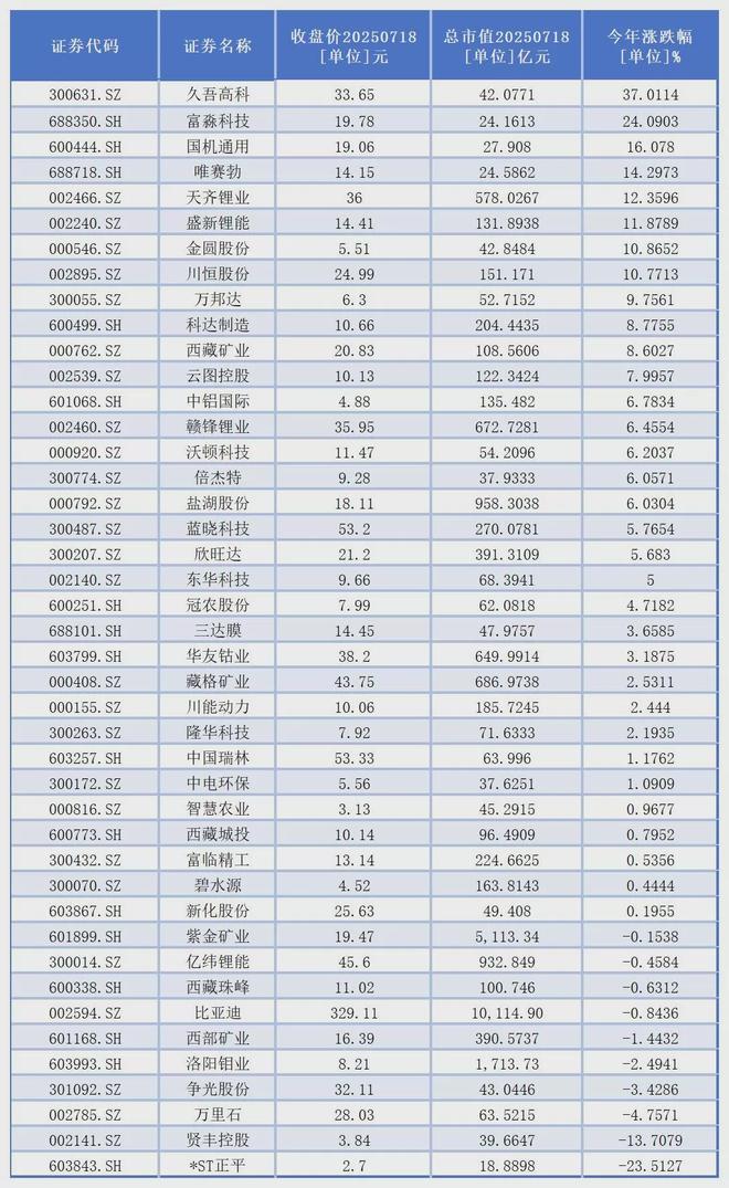 同花顺数据显示,截至7月18日收盘,A股盐湖提锂概念板块一共有43家上市公司。