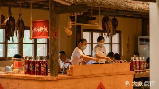 在门店场景方面,这些土菜馆大都走"质朴风",像明档厨房、食材展示,既能够作为功能分区,又能起到场景装饰、氛围打造的作用;再比如手写菜单、大字海报、木质桌椅、泥砖墙、竹编容器等,都是比较低成本又能体现手作、接地气特点的装修。