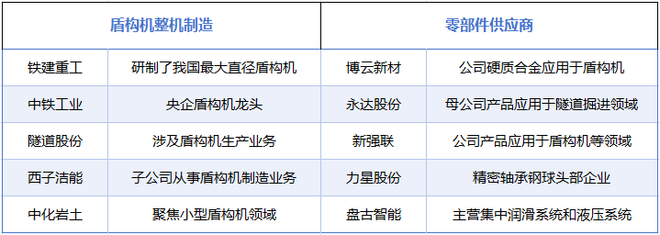 除上述两家公司外,中化岩土(002542.SZ)、西子洁能(002534.SZ)、山河智能(002097.SZ)等公司也涉及盾构机相关业务,具体情况请见下图: