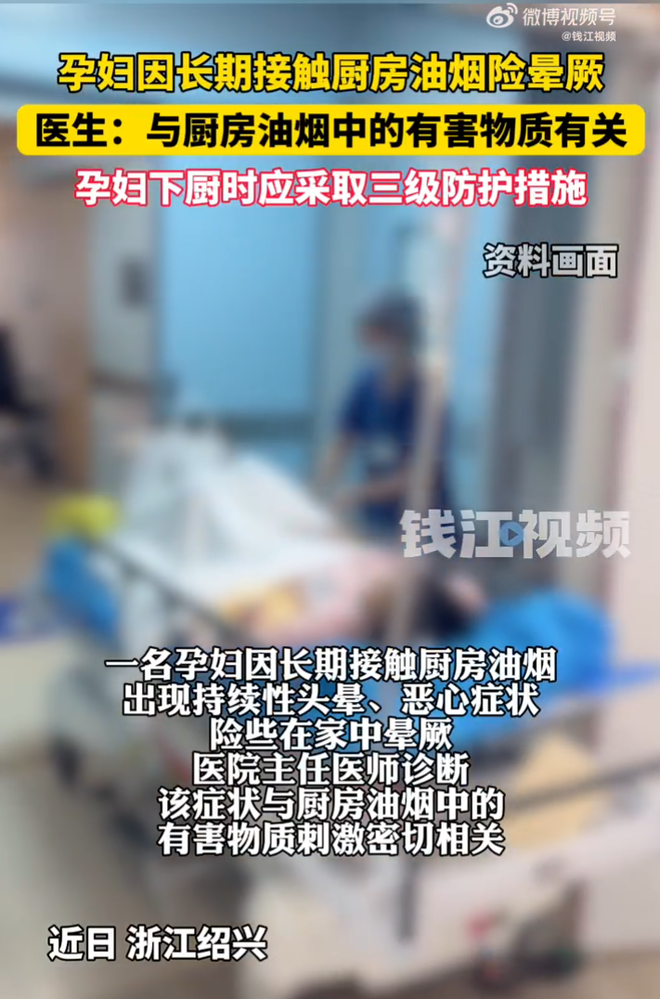 近日,浙江绍兴市妇幼保健院产科二病区接诊了一起特殊病例:一名孕妇因长期接触厨房油烟,出现持续性头晕、恶心症状,险些在家中晕厥。