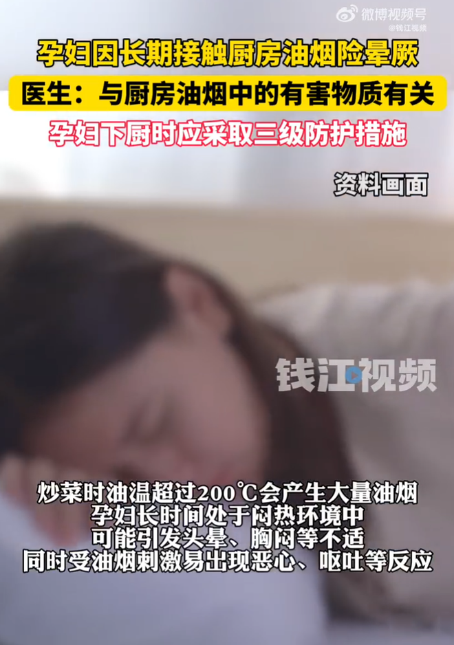 孕妇长期接触厨房油烟险些晕厥,医生:与厨房油烟中的有害物质有关