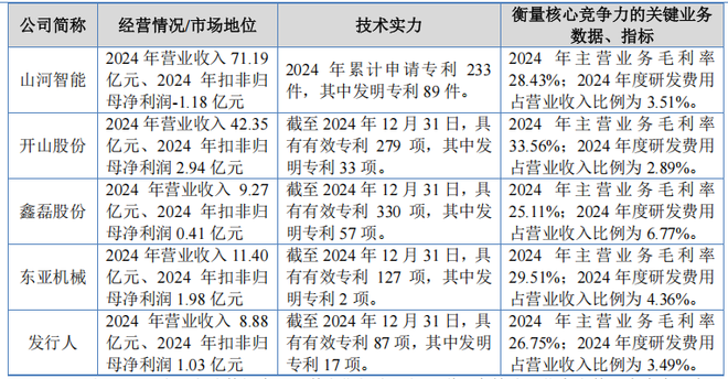 志高机械与同行业可比公司在经营情况、市场地位、技术实力、衡量核心竞争力的关键业务数据、指标等方面的比较情况如下:
