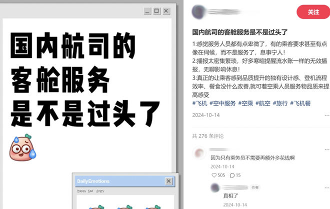 旅客投诉成本太低,对空乘影响太大,空乘申诉成本又太高。
