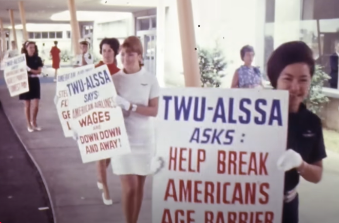 女性空乘们的反抗从很早就开始了:60-70年代,美国空姐们组织了一场“反对职场性别歧视”的大型抗议——当时,大量航空公司通过在广告里“性化”空姐吸引旅客。她们最终使美国航空业取消了对于空乘“不得结婚”的要求和年龄、体重限制。空乘成为美国最早反对职场歧视的群体之一,这些案例在之后的职场性别歧视案件中被一次次引用,为更多职业女性铺平了道路。
