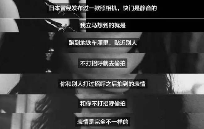 其实,关于“扫街式偷拍”涉及的隐私争议由来已久。日本摄影师濑户正人作品《Silent Mode》(静音模式)便使用静音相机在东京地铁近距离拍摄陌生女性,获得1996年的木村伊兵卫写真奖。该作品公开后遭被摄者强烈抗议,之后,日本立法强制手机拍照必须发出声音。