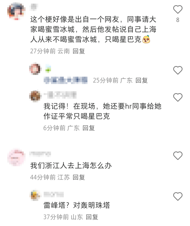 也有人说,其实这一故事并非由蜜雪冰城和东方明珠主动发起,而是源自一些网友的亲身经历。前不久,有网友发帖称,"同事请大家喝蜜雪冰城,但自己是上海人,从来不喝蜜雪冰城,只喝星巴克"。