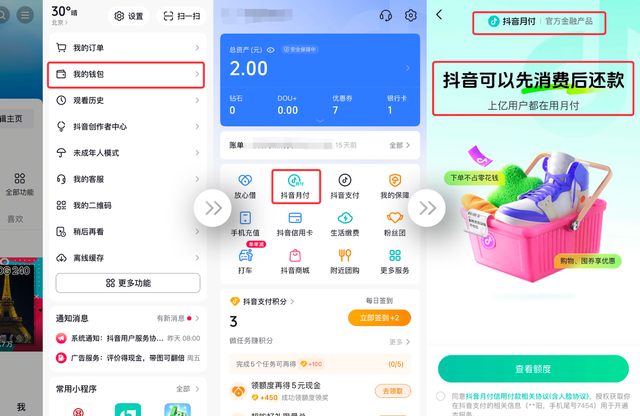 真实情况:抖音月付是一款在线信用付款产品,消费才需还款,不消费则不产生任何费用