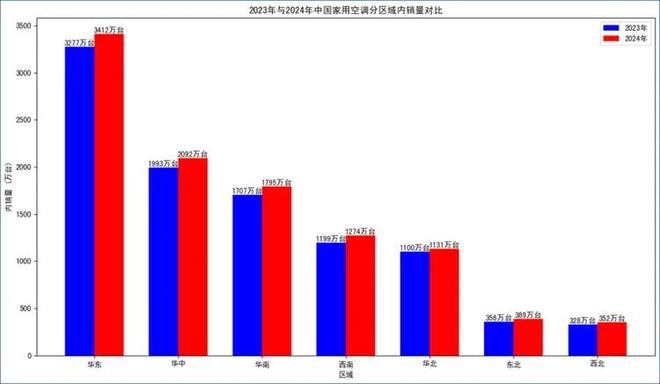 国家统计局数据显示,2023年及2024年东北地区空调销量分别为356万台及389万台,市场规模远不及华东、华中、华南地区。华东人均1.91台空调的保有量更是远超东北地区的人均0.34台。