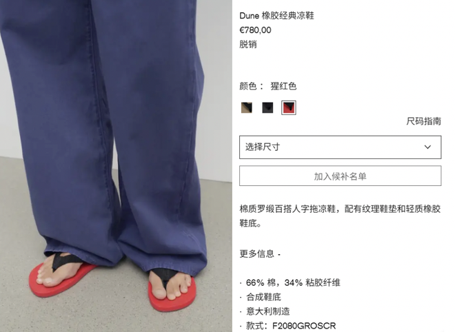 一双标价780欧元(约合人民币6418.7元)的人字拖。