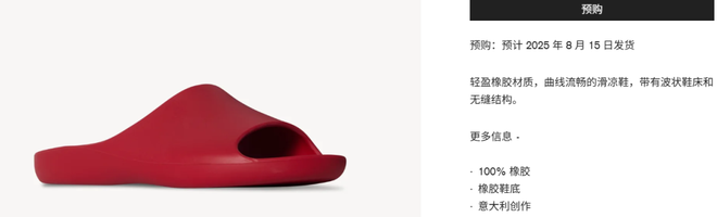 这双名为“Dune(沙丘)”的拖鞋出自有“女高管的优衣库”之称的美国奢侈品牌The Row,按颜色分有红色、米色、黑色三种,按高度分有经典款和厚底款,厚底款更贵,要8 50欧元(约合人民币6994.3元)。