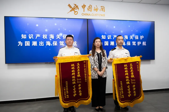 7月25日,北京海关与泡泡玛特国际集团联合举办“知识产权海关保护为国潮出海保驾护航”主题活动。泡泡玛特现场向“海关发布”公众号与北京海关赠送锦旗,以感谢其在打击假冒Labubu产品方面的高效作为。