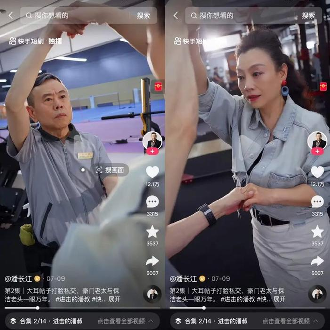 剧中潘长江和“端妃”扮演者李宜娟上演黄昏恋。两人感情线本质是“霸总爱上做保洁的我”,属于短剧热门题材,但将男女定位反转,潘长江是保洁,“端妃”则是“豪门老太”,符合现在观众爱看的女强设定。据悉,喜剧演员出演微短剧正在变得普遍。除了潘长江、朱时茂等老牌明星,《喜人奇妙夜》等新锐综艺中的热门演员,也已经在与品牌合作出演定制短剧。