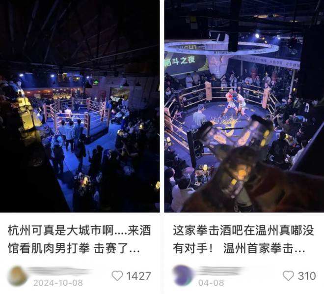 还有些酒吧会在C位摆拳击台,你在台下喝酒,运动员在台上挥拳,老板一夜拥有了酒钱和赛事门票双份收入,算盘打得比谁都快。