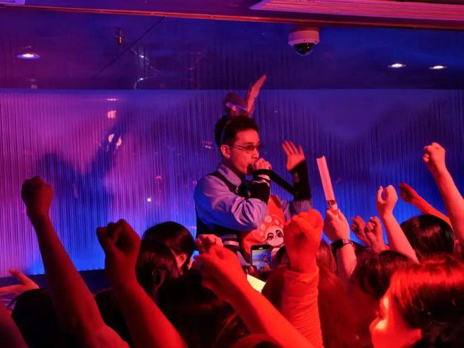 「儿童场」根本不影响北京牛马热舞,全场的都市男女一边尖叫一边蹦迪,站在第一排的丽人们就差上台一起热舞,舞台上的DJ小哥一会跳舞一会打碟忙得像是流水线的工人,还不忘“哄”各位金主:“欢迎大家来到海底捞”“今天大家辛苦了”。