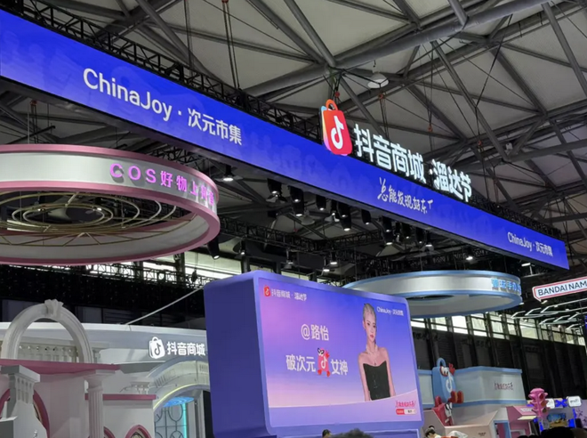 不仅仅是淘宝闪购,抖音商城今年也在ChinaJoy布局,并且展台规模更大。