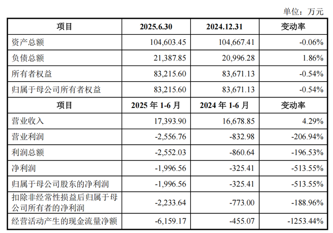 2025年1-6月,节卡股份经审阅的收入为17,393.15万元,归属于母公司股东的净利润为-1,996.56万元,同比下滑513.55%。