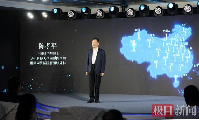 发布会现场大屏幕上,一幅特殊的“中国地图”记录着中国科学院院士、同济医院外科学系主任陈孝平教授为推广“陈氏胰肠吻合术”走过的省市。