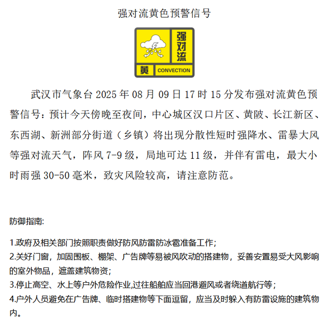 武汉发布强对流黄色预警,预计局部地区将出现阵风达11级的情况,市民需做好防范措施,注意强风可能带来的安全隐患,避免在室外逗留,相关部门需密切关注气象变化,及时采取应对措施,确保人民群众生命财产安全。