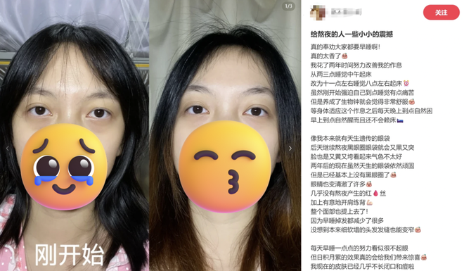 有博主身先士卒,坚持两年早睡早起每天记录,肉眼可见黑眼圈确实没了,还顺便起了号,把自己干成早睡派模范人物,至今谁提起早睡的好处都得把她拎出来。