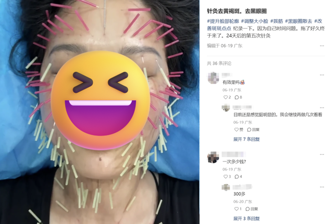 讲究一点的,八九个穴位每天按得手疼。图省事的买了穴位贴,再不济自己裁贴颈椎的膏药,最较真的已经躺上了针灸的床,光是看这一脸刺猬就能感受到当年紫薇的痛。博主说按掉了20多年黑眼圈,还是有明白人看了回复:“按了半小时,应该是肿了。”