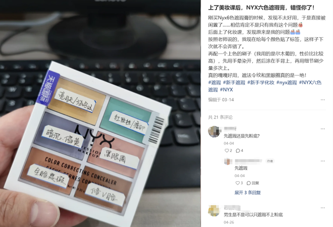 比什么都立竿见影的是涂一层遮瑕。歌剧魅影、NYX这两个品牌都是出了名的“扒得牢、颜色多”。“扒得牢”的花语是拔干,被劝退的沙漠大干皮都得自我反思,有没有根据教程先滴精油,用之前再用指腹一点点化开。