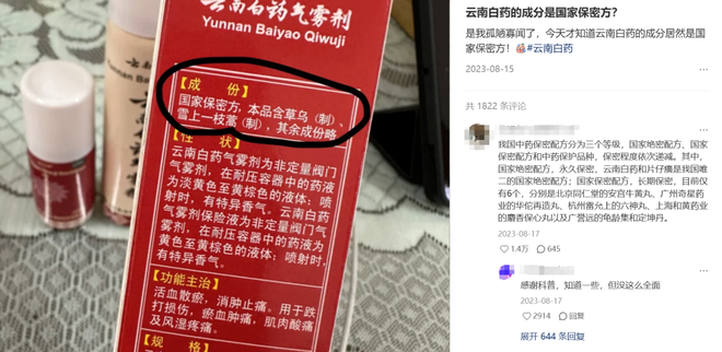 好比武侠小说里的金疮药、万金油,云南白药成了当代人自成神医的药引子,难怪盒子外的成分都写着“国家保密”——“搁以前也是用来保命的水平”。