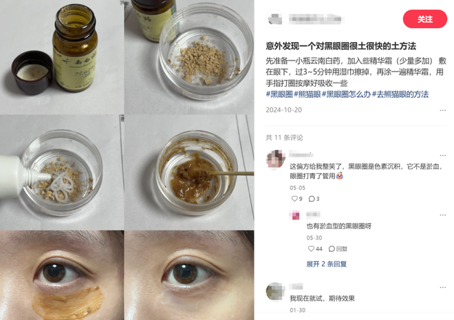 云南白药湿敷黑眼圈替代海蓝之谜?不想被贵妇眼霜收割的熬夜打工人都在玩“邪修”