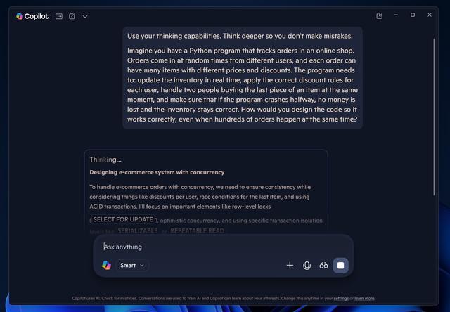 这意味着无需更新应用即可启用“智能”或 GPT-5 模式。但它与 OpenAI 的实现有何不同?在测试中,我们发现 Microsoft Copilot 免费提供宽松的用量限制。