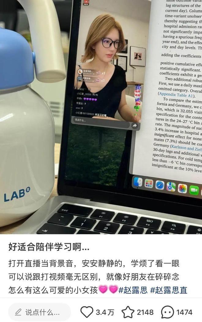 赵露思直播能种草,甚至发展出直播生态中特有的属性——陪伴。有人把赵露思直播当作电子榨菜,就有人当作白噪音,“赵露思直播好适合陪伴学习”的想法随处可见,甚至有人已经到了为了学习必须“每天蹲蹲赵露思”。最多一次,单场预约人数超过了30万。