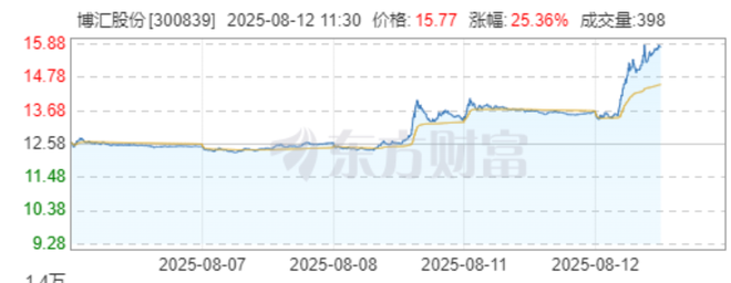 8月12日早盘,博汇股份(300839.SZ)大涨15.70%,截至上午收盘,报价15.77元/股。