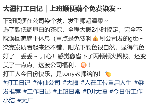 “在大疆上班的任务之一是薅免费的染发。”
