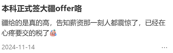 “天才”们自然得有“天才”的待遇。有人透露,大疆今年的校招算法岗位月薪3.5万起步,15薪,年薪至少50万起。在“好奇大疆到底赚多少”的帖子下,回复是,“三年买车五年买房十年买坟”。