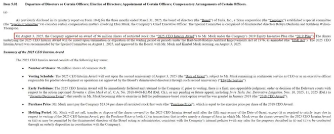 8月4日,特斯拉向美国证券交易委员会(SEC)提交了一份有关CEO马斯克的临时薪酬方案。方案显示,特斯拉公司董事会已向首席执行官马斯克授予一项新的临时薪酬方案,包括9600万股股票,按当前股价(周一特斯拉收盘价为309.26美元/股)计算总值约为297亿美元。