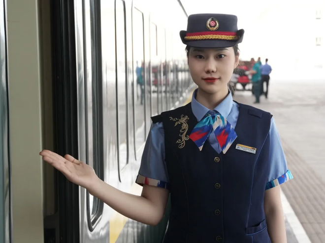 如果坐火车去新疆,也可以留意一下乘务员的制服。8月中国铁路乌鲁木齐局集团有限公司为普速旅客列车乘务员换发的新款夏季制服,领口与袖口就都点缀了艾德莱斯丝绸纹样。