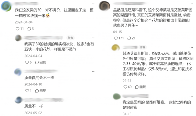 市面上名为艾德莱斯的产品五花八门,价格差距也拉得很开。