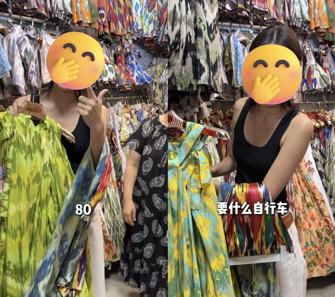 只是偶尔也需要碰碰运气。不少人怀着买新疆高定的心来,带着货不对版的裙子走。为化纤付了丝绸价、裁缝缝不出约定的款式、虽然现场量体但衣服并不合身,都是游客们踩过的“雷”。此时只能勉强安慰自己,算了,还好也不算特别贵。
