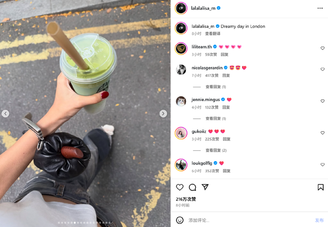 8月14日,在Blackpink伦敦演唱会前夕,Lisa在Instagram更新日常照,其中六张HEYTEA饮品被“明显露出”。与此前7月22日无意中露出喜茶的三倍厚抹不同,此次晒照画面设计更集中于饮品,似乎是一场经过精心构图的“种草行为”。