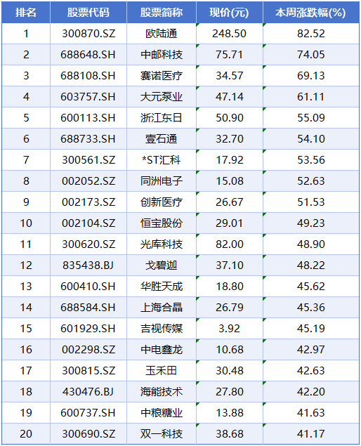 本周市场涨跌榜:机器人、算力、半导体板块狂飙,欧陆通“夺魁”