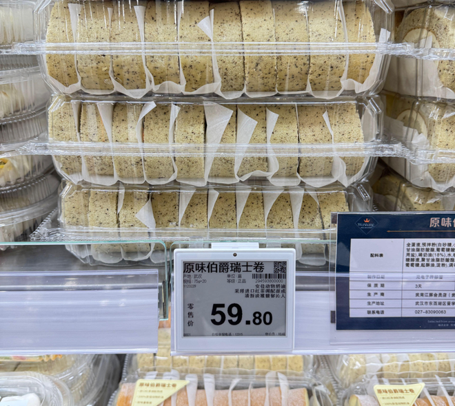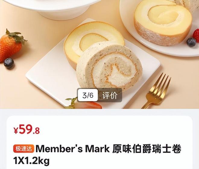 此外,江豚会员店的部分产品,有不少也与山姆的爆款相似,包括瑞士卷、烤鸡等,定价也与山姆接近。比如其"原味伯爵瑞士卷",不仅名称与山姆一致,售价也同样59.8元。
