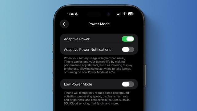 自适应电源模式本身是在 iOS 26 中引入的。它补充了现有的低功耗模式功能,该功能自 2015 年 9 月 iOS 9 发布以来就 一直存在。