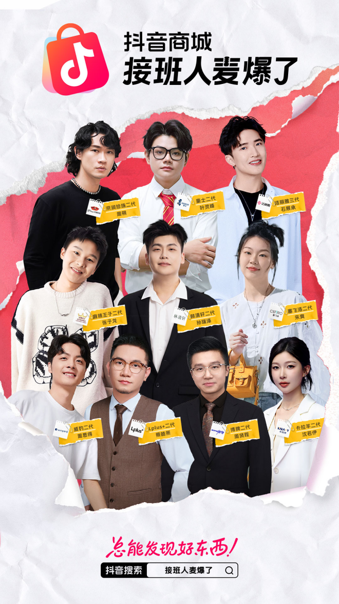 与此同时,创二代在抖音的集中发力也并非偶然。抖音电商有内容、有用户、有完整的商业承接机制,最近推出的全新内容IP“接班人麦爆了”,更成为了刚刚接班的创二代们集中亮相的舞台。